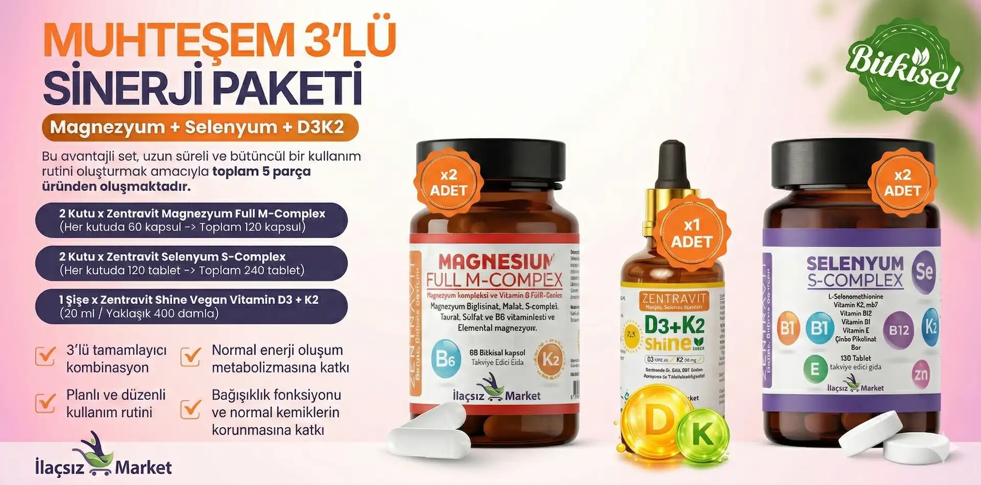 Muhteşem 3'lü Sinerji Paketi: Magnezyum M-Complex + Selenyum S-Complex + Vegan D3K2