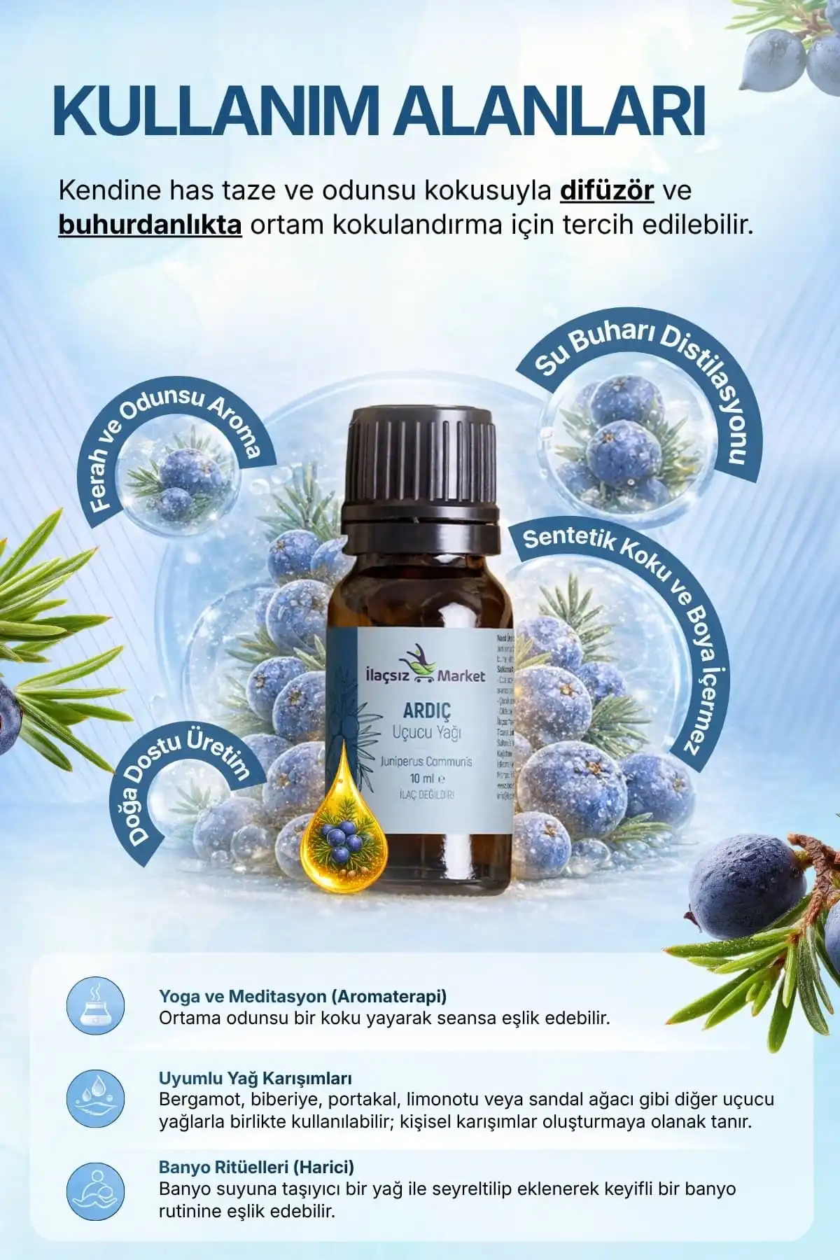 Ardıç yağının kadim kullanımı, faydaları ve aromaterapik özellikleri hakkında hazırladığımız blog yazımızı inceleyebilirsiniz.
