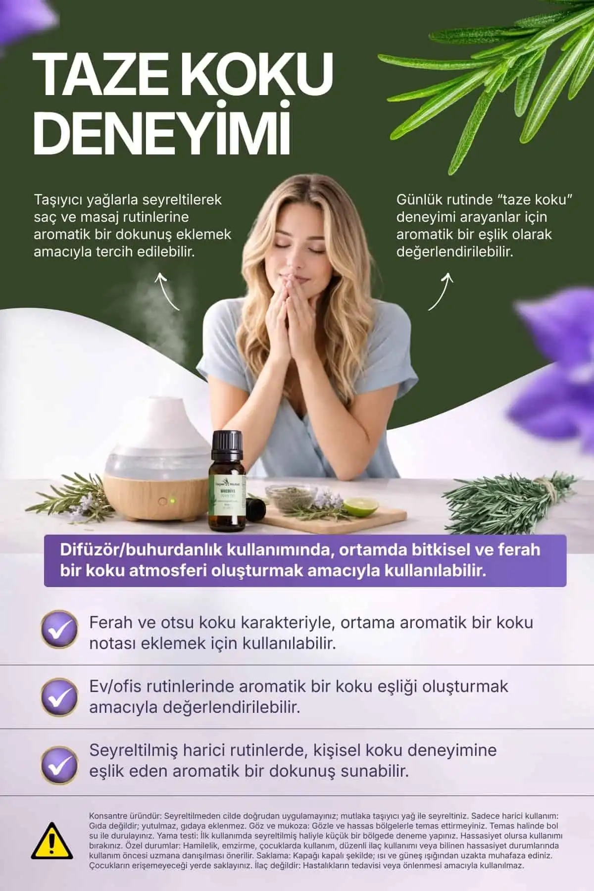Difüzör veya buhurdanlık yardımıyla ortama hoş bir koku vermek amacıyla kullanılabilir.