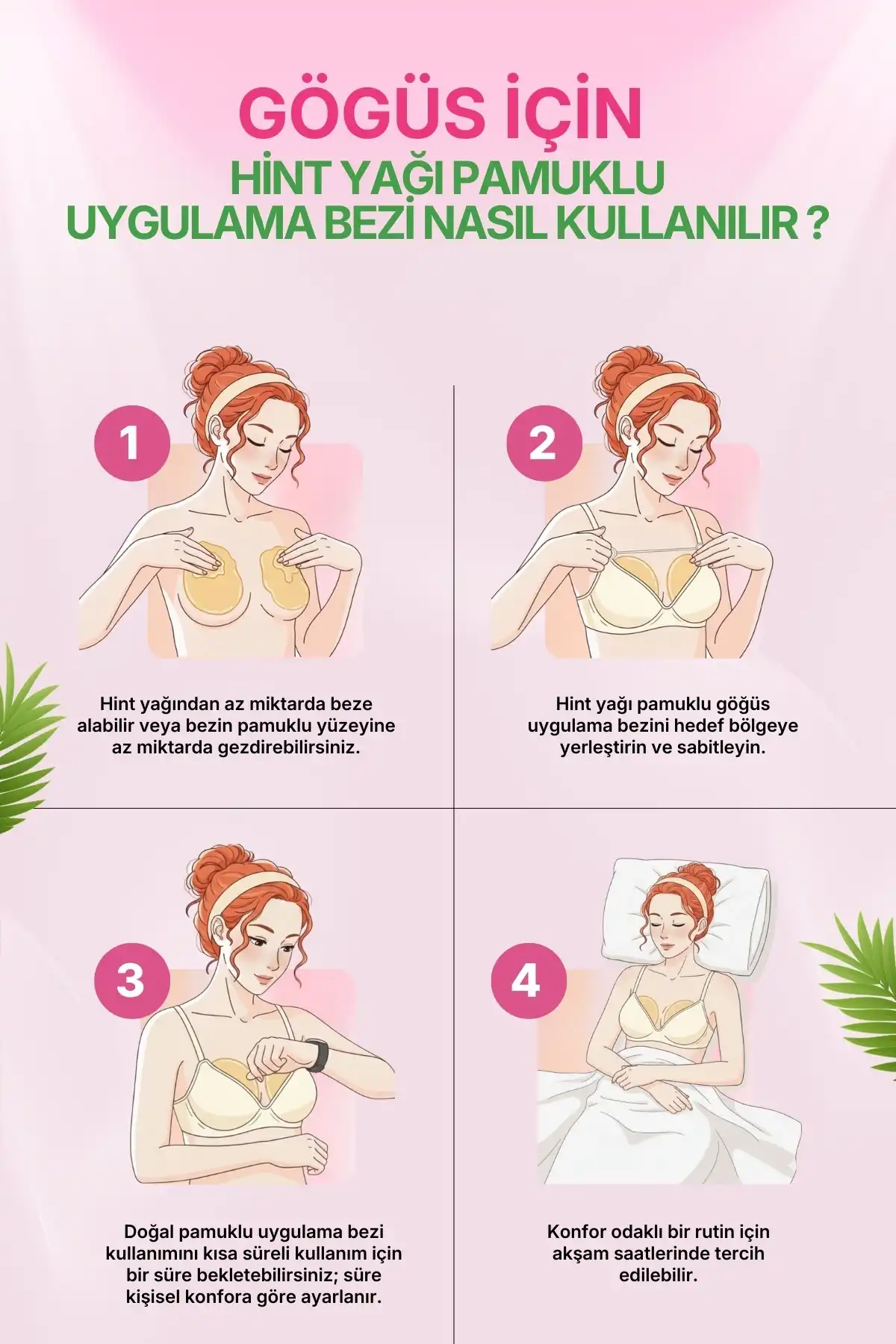 Hazırlık: Bir miktar doğal içerikli hint yağını göğüs bölgesine nazik hareketlerle haricen sürünüz.
