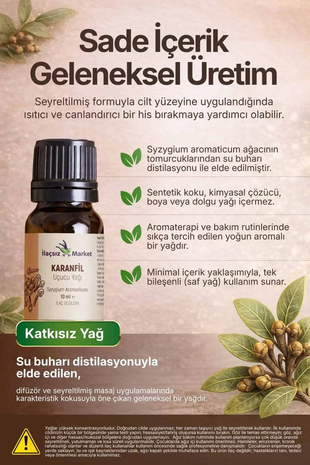 Syzygium aromaticum bitkisinin tohumundan su buharı distilasyonu yöntemiyle elde edilen %100 doğal uçucu yağdır.