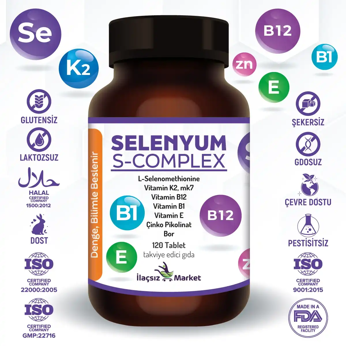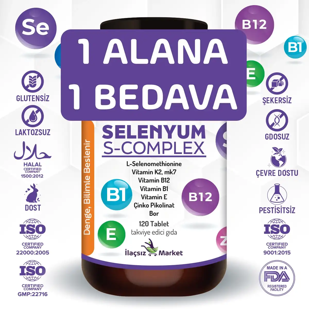 Ürün; FDA kayıtlı (15830586508), GMP, ISO 22000, ISO 9001 ve HELAL sertifikalı tesiste üretilmiştir. Avrupa menşeli içerikler kullanılmaktadır.